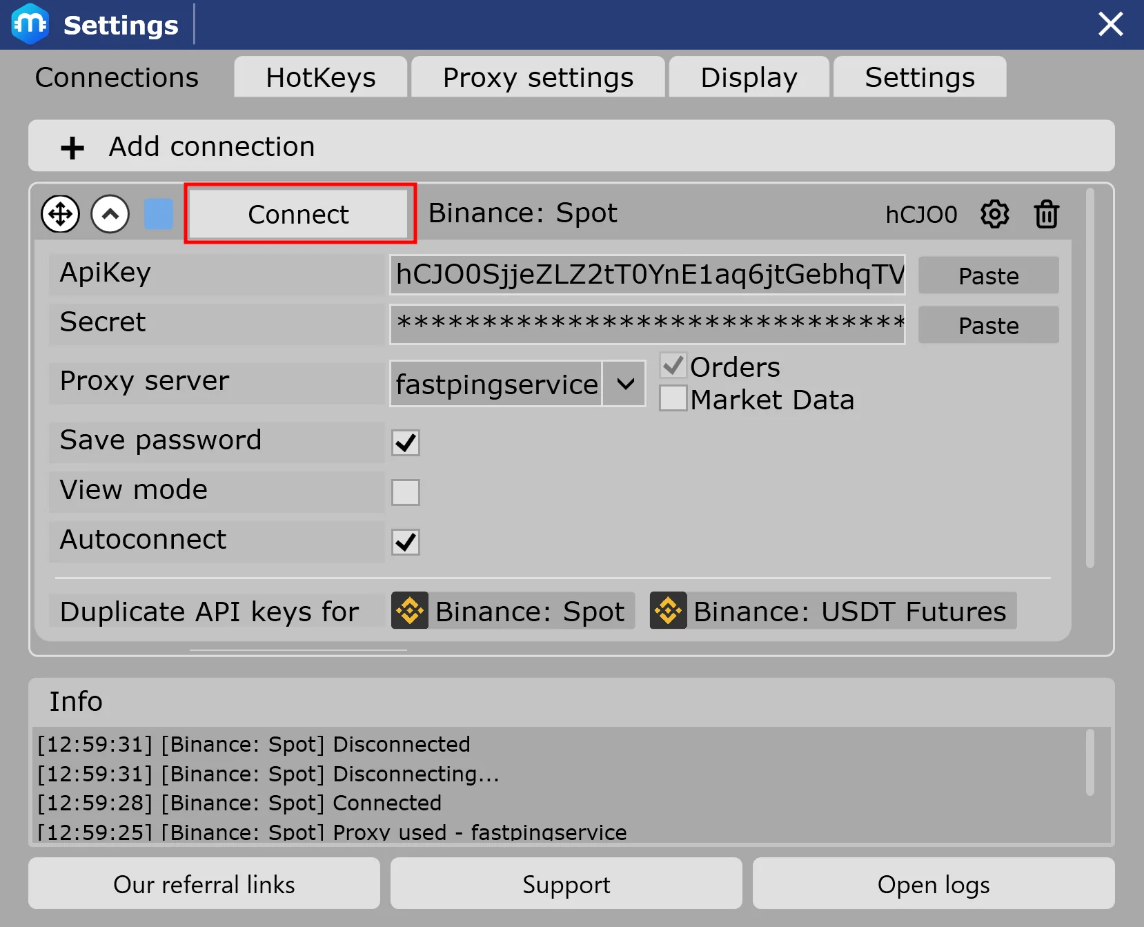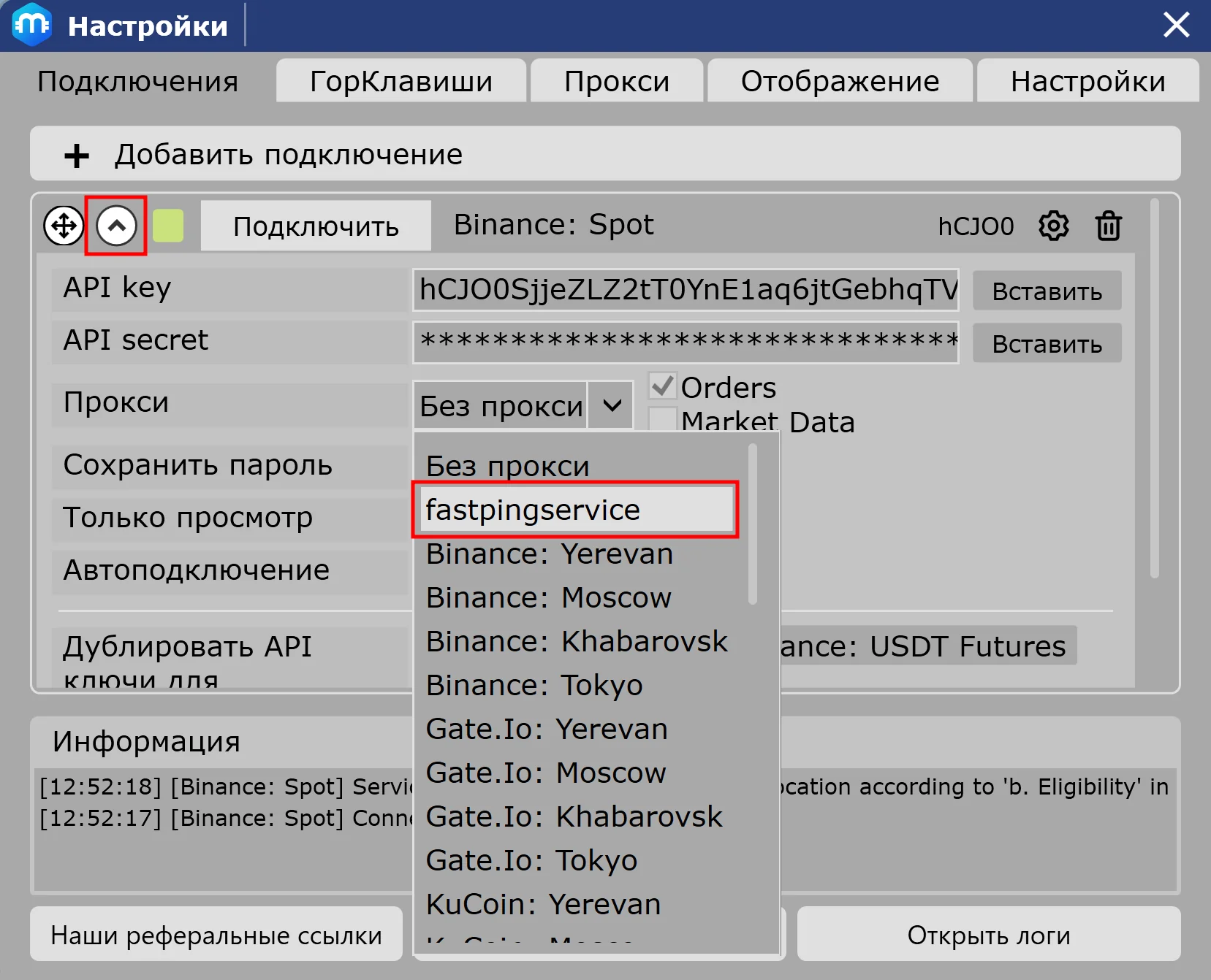 MetaScalp Настройка терминала для работы c Fast Ping Service